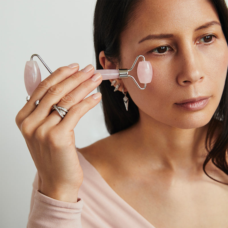 Use the Rose Quartz Face DuoRoller to relax muscles, firm skin, smooth away the marks of time and correct expression lines. The stone refreshes, relaxes muscles and tightens pores Holidermie has selected rose quartz for its DuoRoller visage.