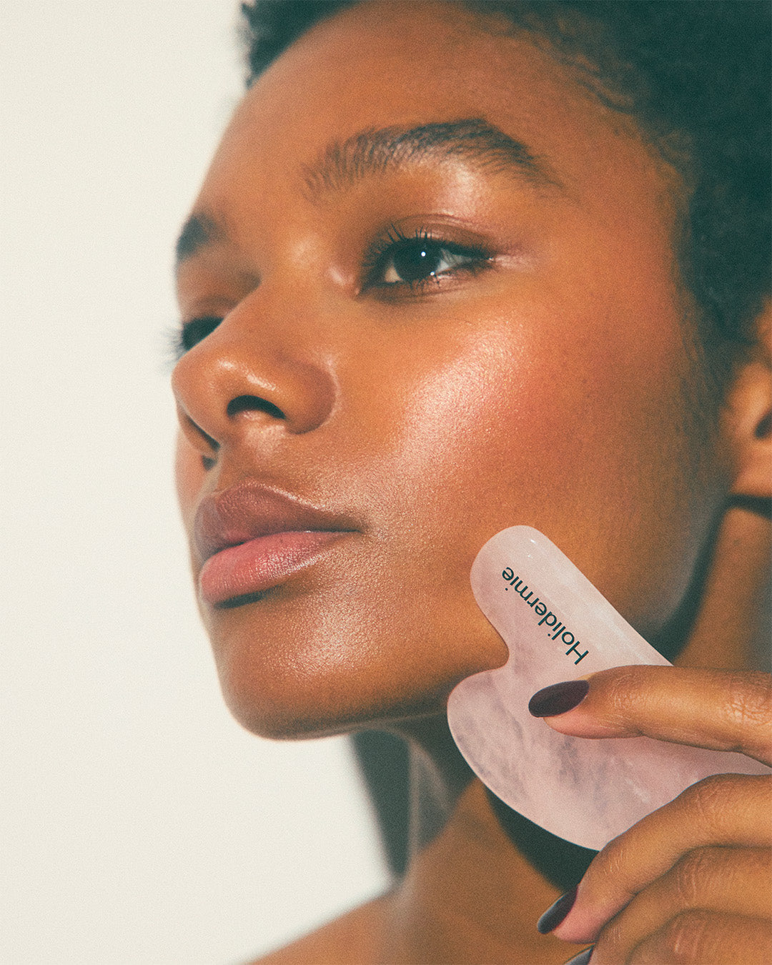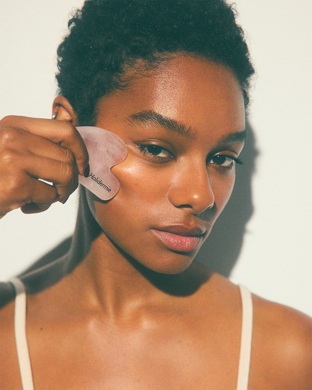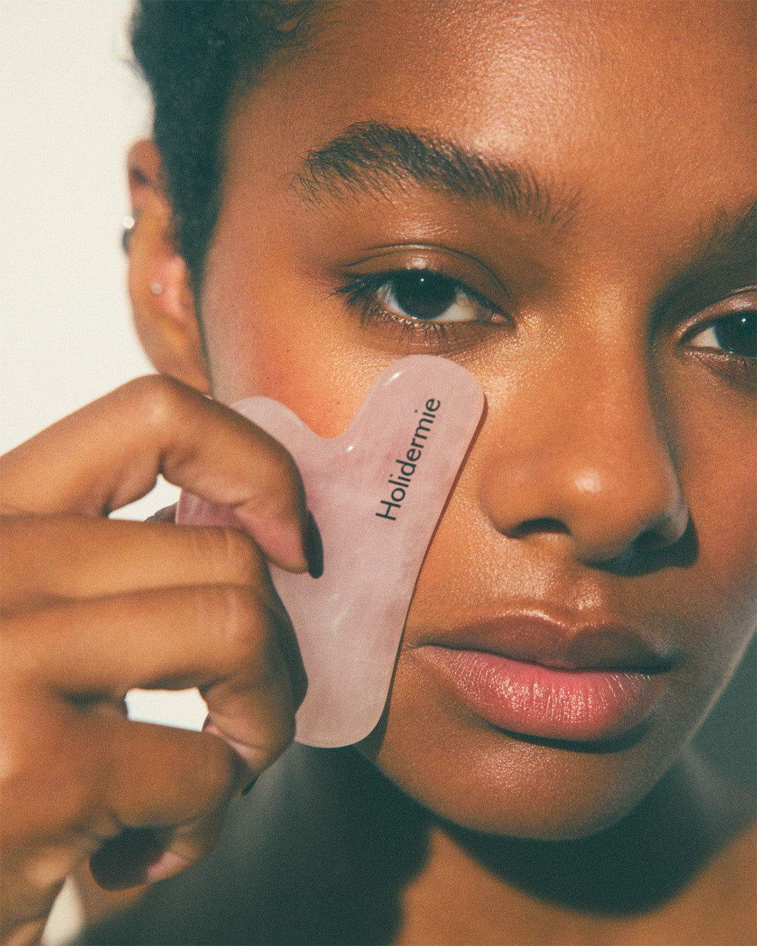 Inspired by traditional Chinese medicine, this rose quartz tool promotes microcirculation and relaxes facial tension. Used daily, it helps smooth the features, stimulate drainage and revive the complexion's radiance. Contours appear more toned, and signs of fatigue fade. Use with your facial care product for a soothing, lifting massage.
